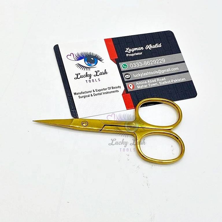 Tijeras de maquillaje con etiqueta personalizada profesional TG, mango de acero inoxidable de Plasma completamente dorado con hoja recta y Punta curva