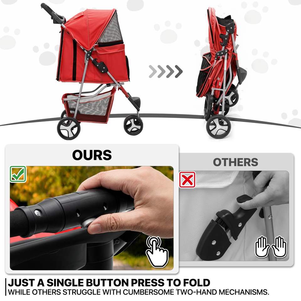 Cochecito para mascotas al aire libre con diseño plegable, ruedas rodantes suaves, mango de agarre suave, Impresión de logotipo personalizado para perros y gatos