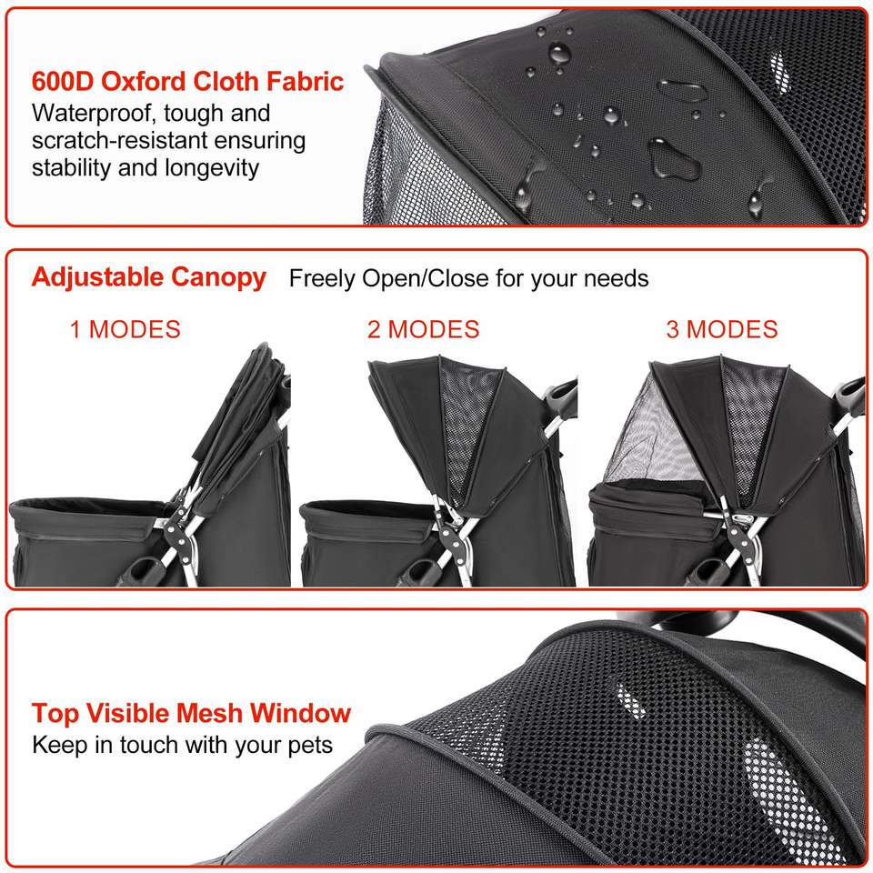 Elegante cochecito para mascotas con entradas de cuatro ruedas delanteras y traseras con cremallera y diseño fácil de plegar para viajar