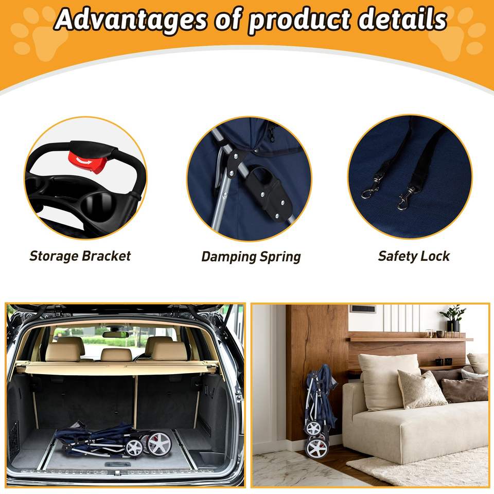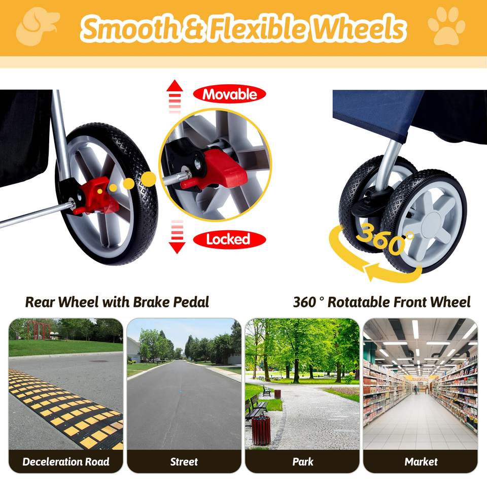 Cochecito Premium para mascotas de cuatro ruedas con cesta de gran capacidad, tela impermeable y ruedas rodantes suaves, 1 unidad