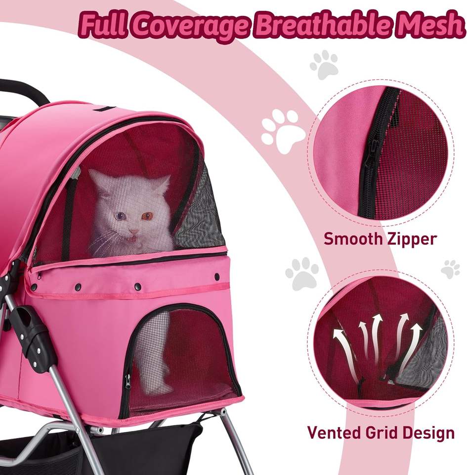 Carrito para mascotas inteligente y moderno, diseño de tela transpirable, rotación, 4 ruedas, cochecito para mascotas, cómodo, cochecito mediano para gatos