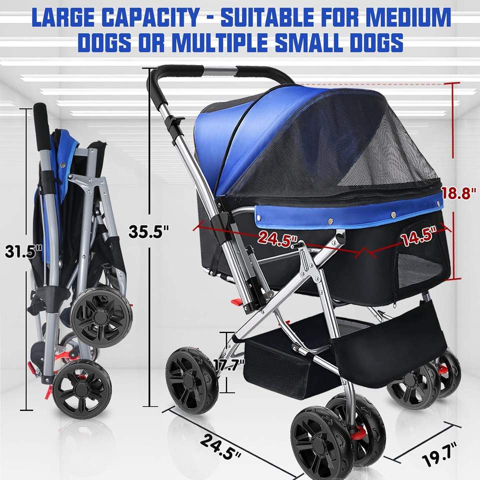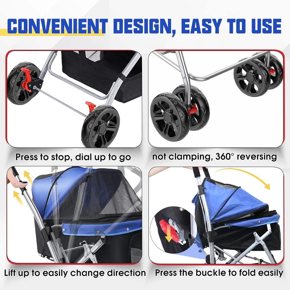 Cochecito de mascotas moderno Americano, diseño de tela, rotación, 4 ruedas, comodidad, cochecito mediano para gatos, 2017