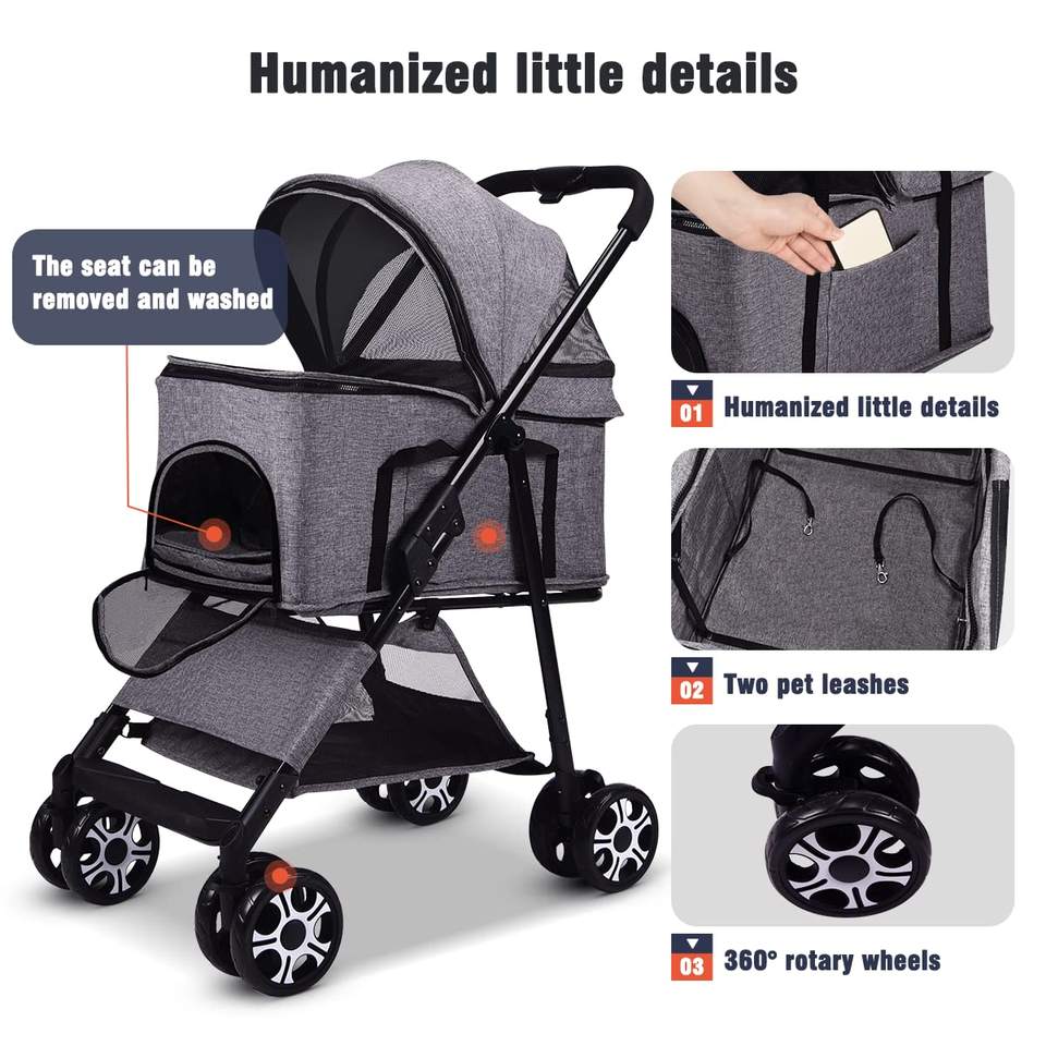 Cochecito de animales inteligente, diseño de tela, rotación, ruedas resistentes, comodidad, cochecito mediano para mascotas, 2017
