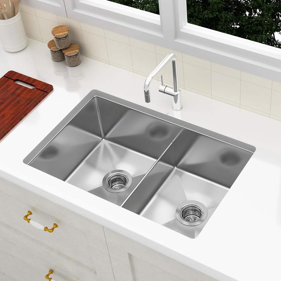 Fregadero de acero inoxidable hecho a mano, resistente a las manchas, doble cuenco, diseño reductor de ruido, perfecto para cocinas de alto tráfico