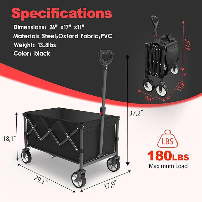 Aplicación:Compras, Herramientas, Almacenamiento, Deportes, Niños, Carro del carro, Plegable, Transporte, Robusto, Herramienta de jardín, Cubierta Bolsa, Al aire libre, Camping, Senderismo, Playa, Viajes