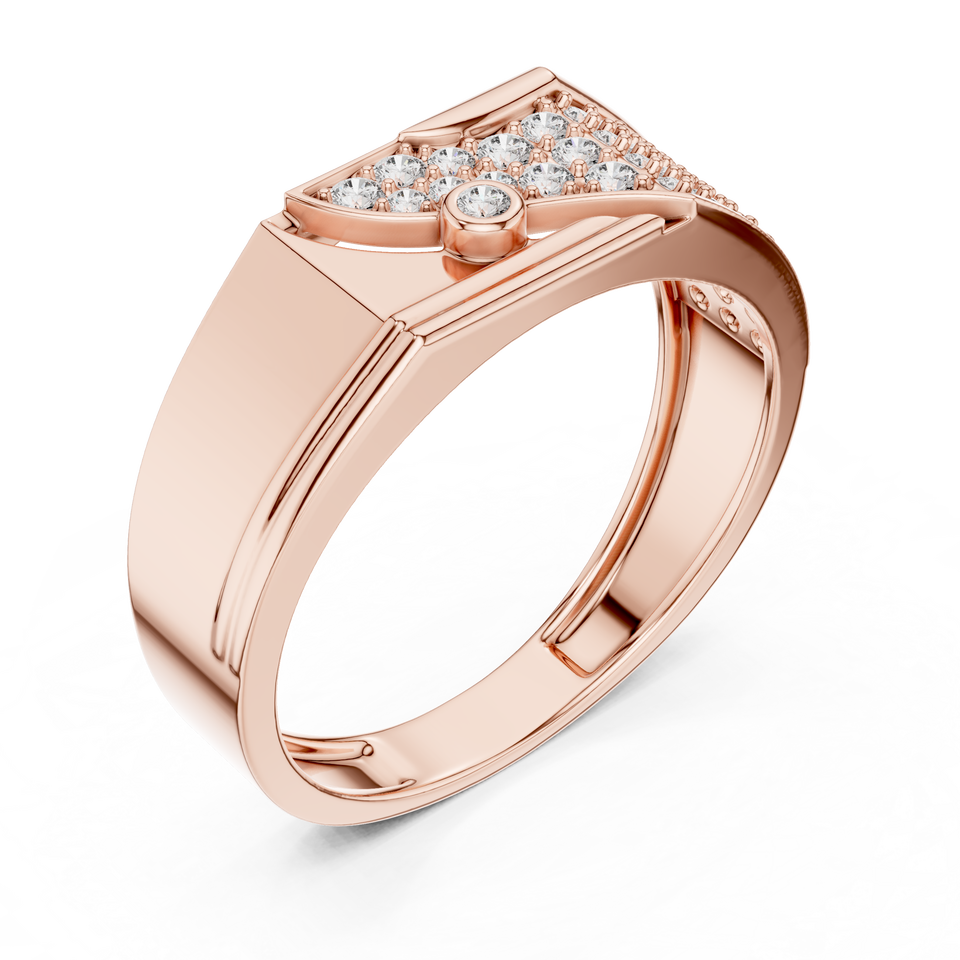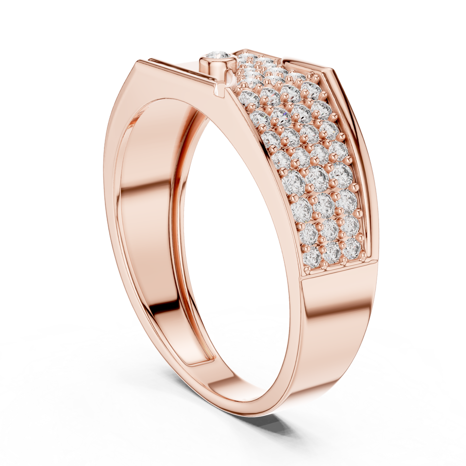 Anillo MONARCH PAVE con Diamantes Cultivados en Laboratorio, Corte Redondo, Oro Rosa de 18 Quilates, Bañado en Rodio, Certificado, Regalo de Boda o Compromiso para Hombre