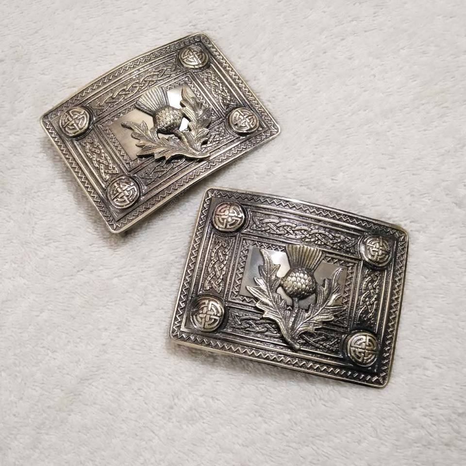 Hebilla de cinturón de latón medieval THISTLE CELTI KNOT con acabado cromado modelo 2017