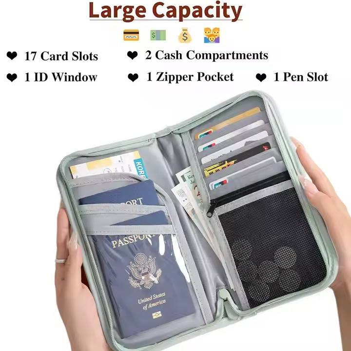 THK0133 Dokumente Documentos Pasaporte Funda Cartera Cremallera-Bolsa RFID Oxford Cuero Teléfono Tarjeta Organizador de viaje