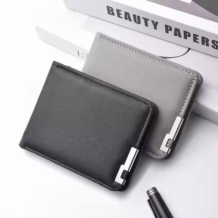 THK0292 Hot Metal Trim PU Leather Business Casual Cartera plegable Tarjeta Cartera de lujo para hombres