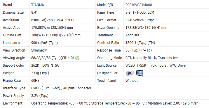 Interfaz de comunicación:CMOS (1 canal, 6 bits), conector de 40 pines