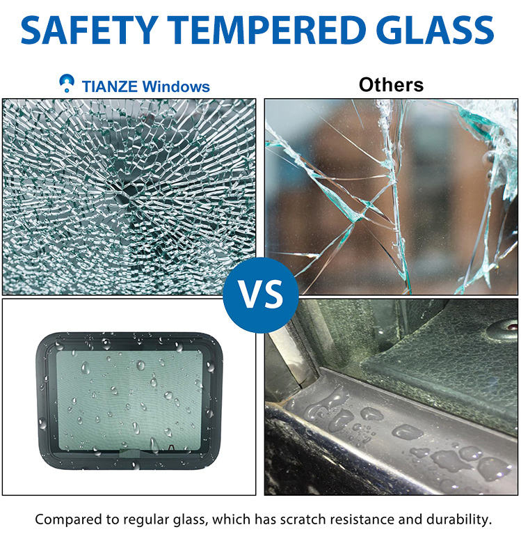 Accesorios para Autocaravanas TIANZE, Ventana Lateral para Autocaravana de 762*508 mm con Persianas y Mosquitera, Protección UV, Ventanas de Vidrio Templado