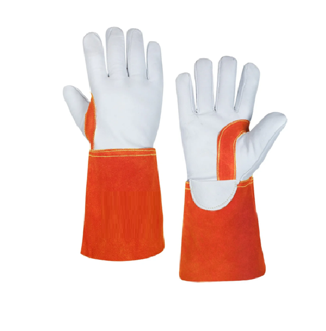 Guantes de soldadura TIG con forro ParaActiv Protección contra cortes Grano de cabra Kontour Muñeca arqueada Palma sin forro Kevlar 16 PULGADAS Personalizable