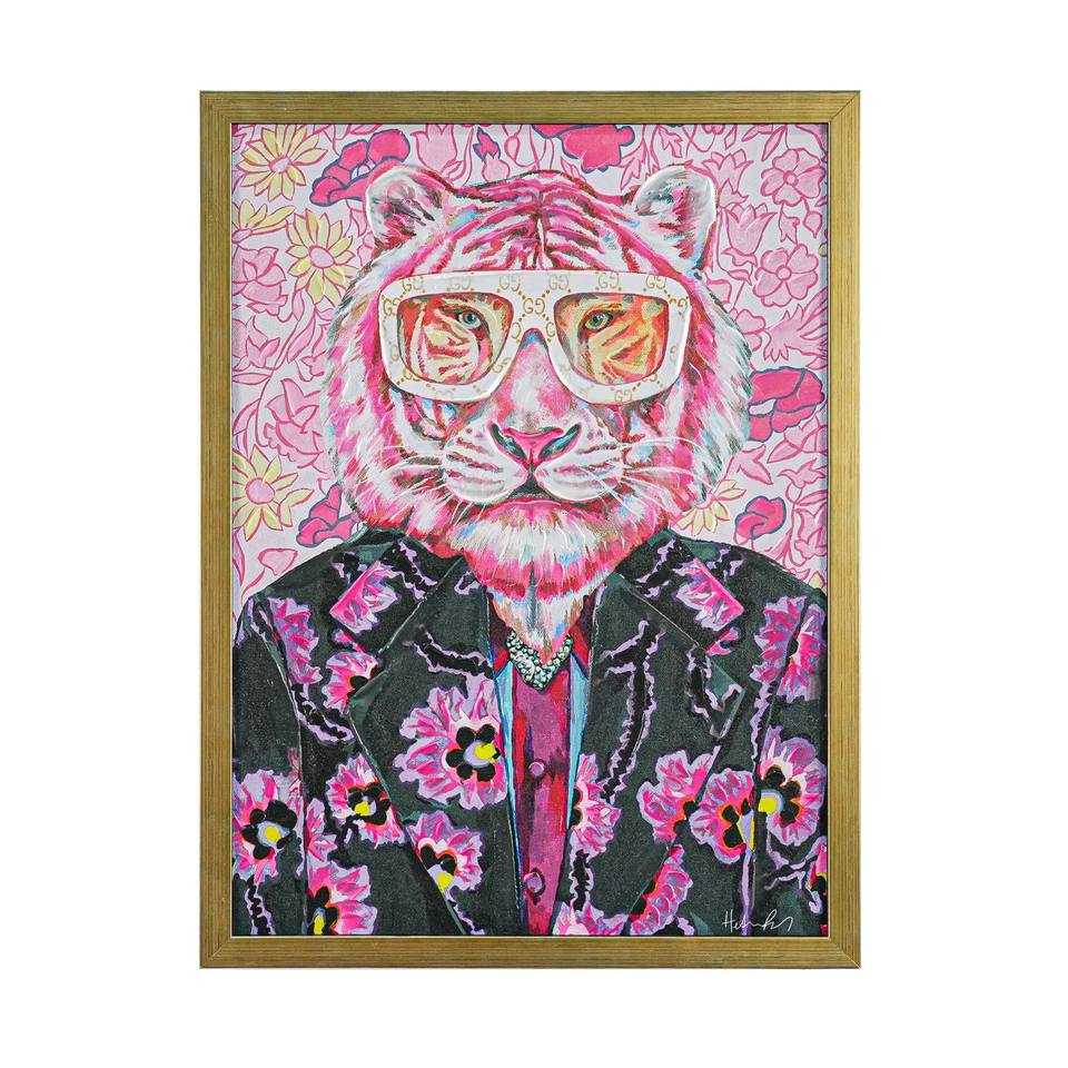 PINTURA SOBRE LONA TIGER CON MARCO Efecto Madera 45X60CM GROSOR 4CM