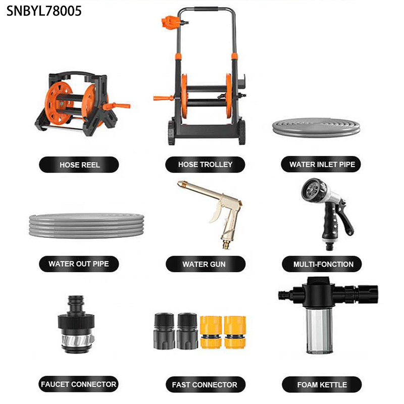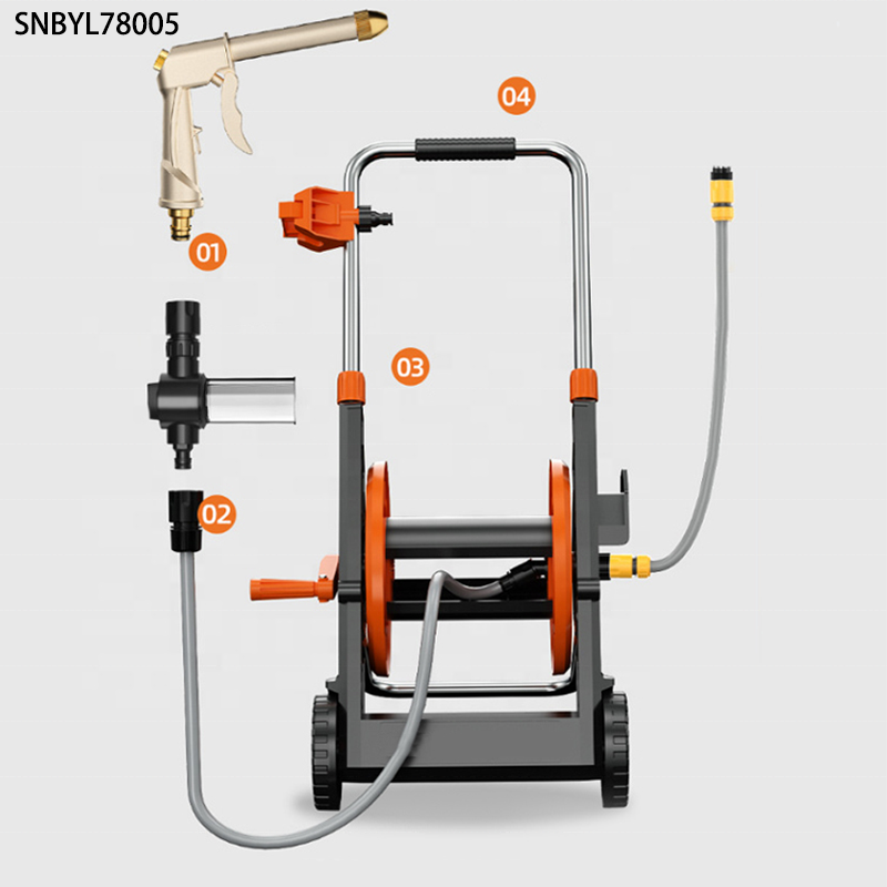TIKTOK Amazon Venta caliente Carro de manguera plegable Kit de regadera de alta presión Riego de césped Carrete de manguera de jardín de PVC de 50 pies