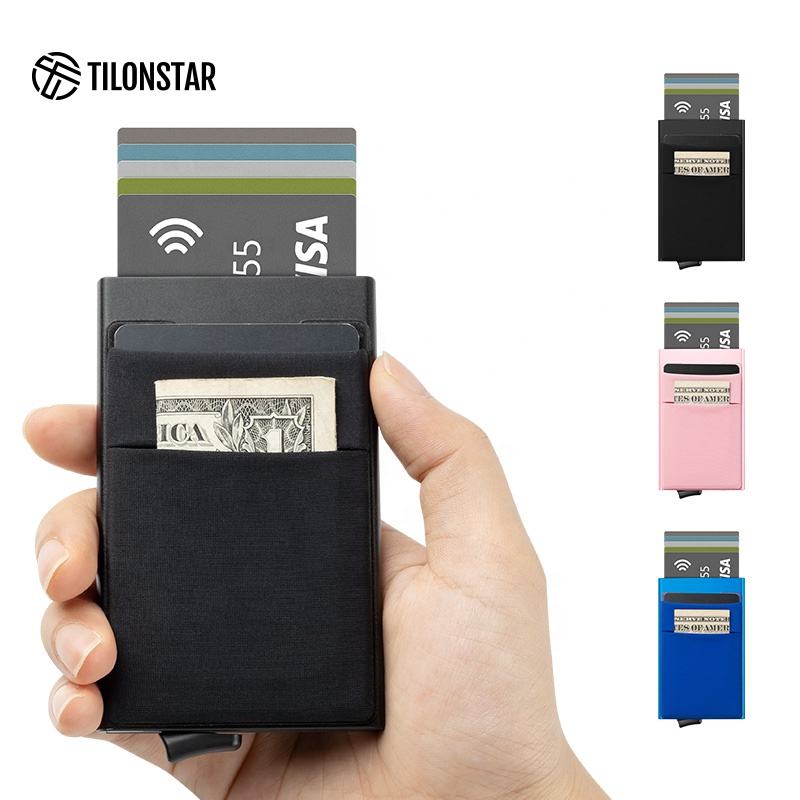 TILONSTAR Slim Pocket RFID Metal Wallet Fabricante Pop up Business Aluminio Money Clip Bank Titular de la tarjeta de crédito para tarjetas