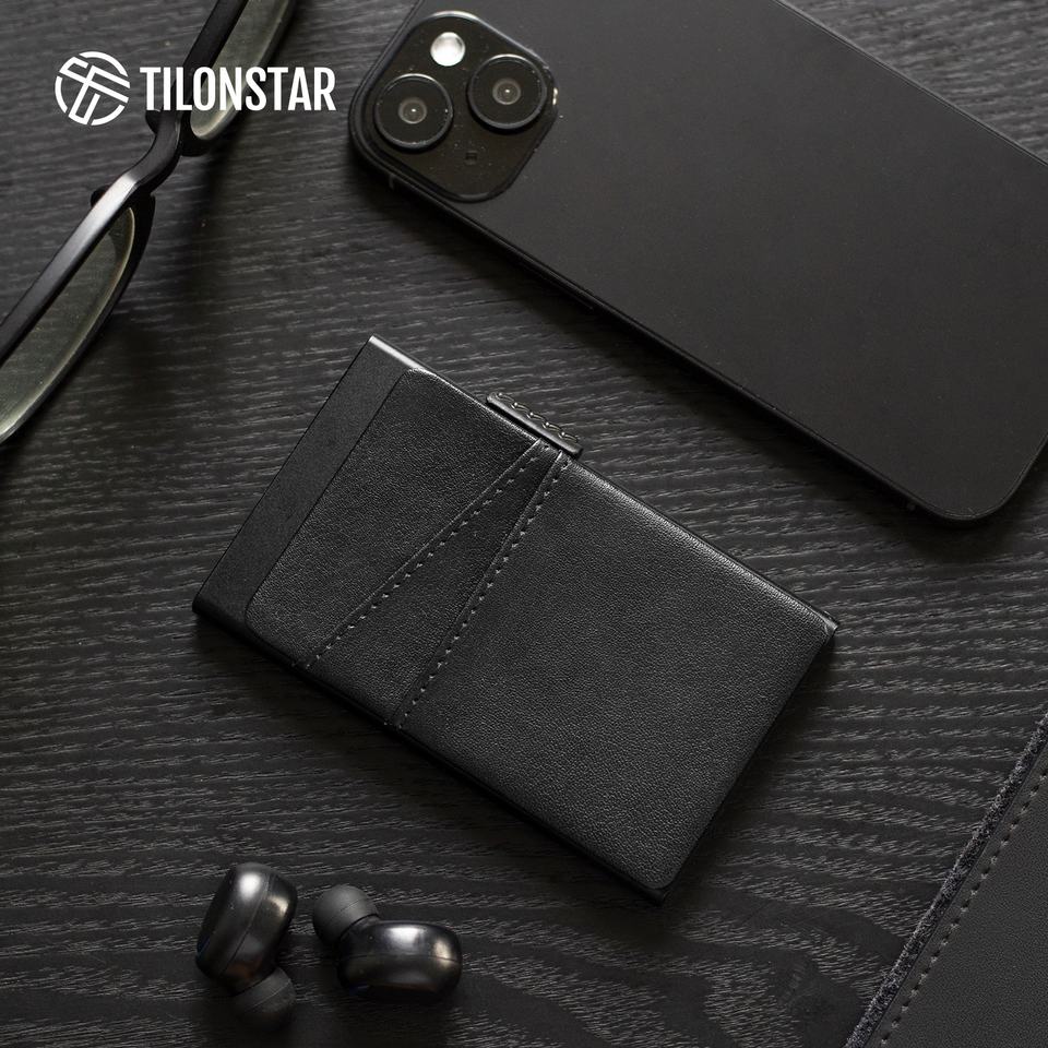 TILONSTAR TG304, tarjetero de aluminio con diseño de bolsillo de cuero Delgado, con función de bloqueo RFID
