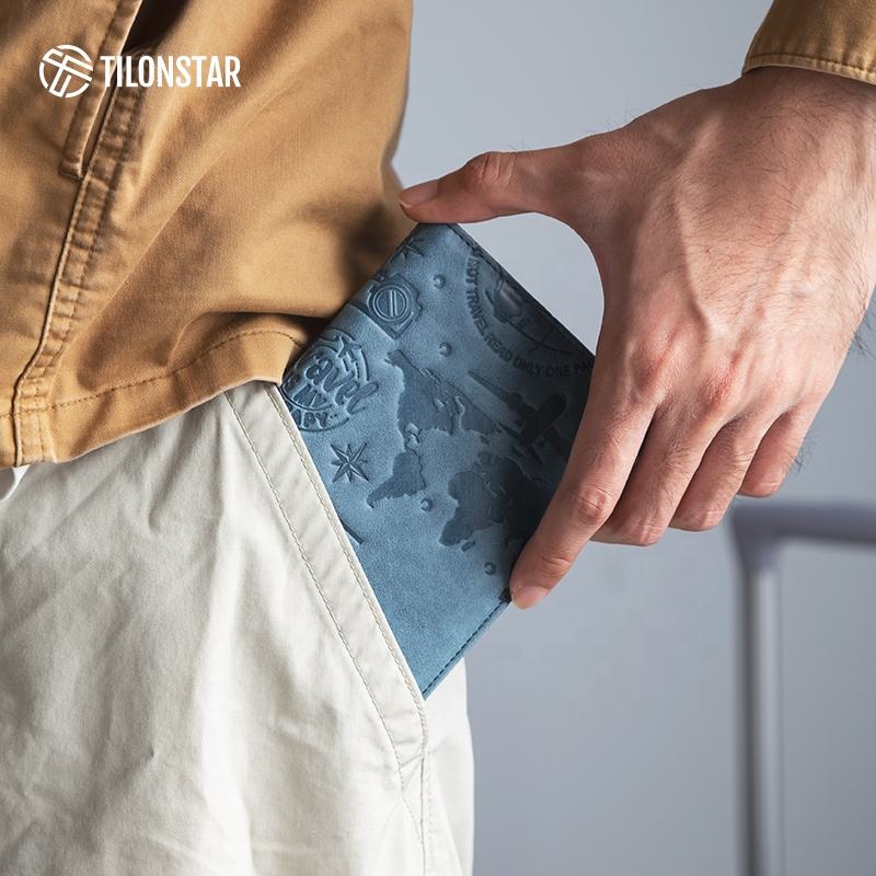 TILONSTAR TPW102 Cartera de viaje de alta calidad personalizada Funda de pasaporte de cuero PU RFID Bloqueo Pasaporte de lujo con diseño