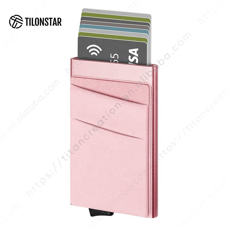 TILONSTAR TVC104 Protector de tarjeta de aluminio Minimalista Hombres Titular de la tarjeta de crédito Negocios RFID Pop Up Card Holder Case