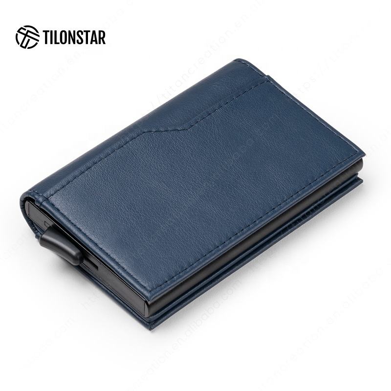 TILONSTAR TVC205, cartera emergente con logotipo personalizable, antirrobo, bloqueo RFID, tarjetero de cuero para negocios