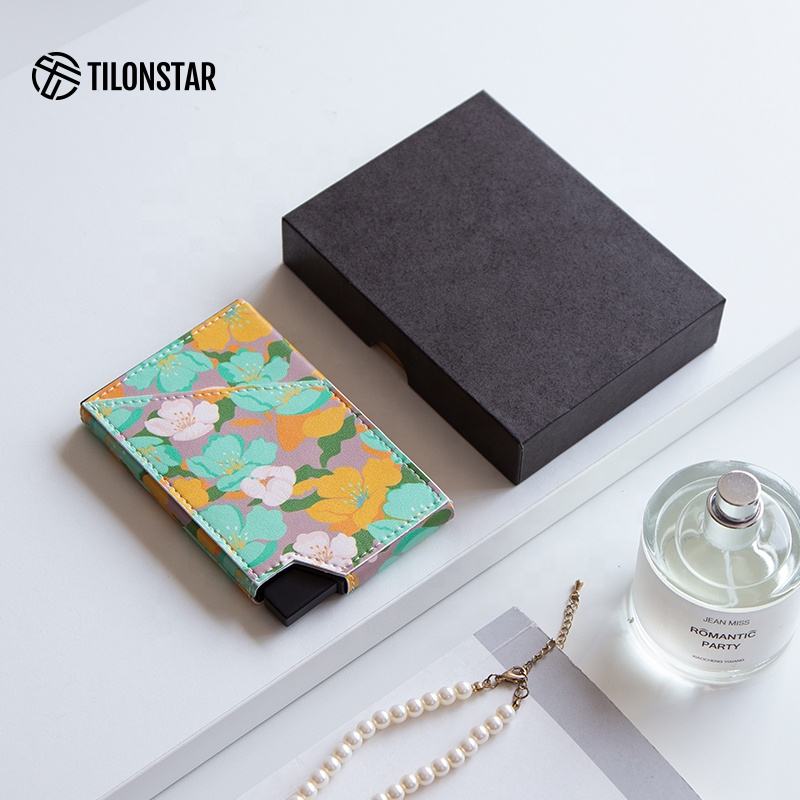 TILONSTAR TVC501 alta calidad hombres Pop Up titular de la tarjeta de crédito Rfid cuero aluminio tarjeteros cartera