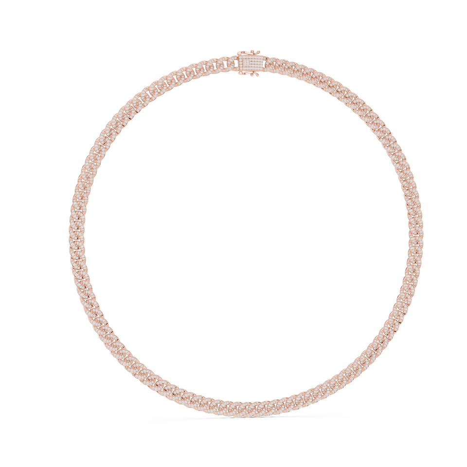 Cadena Cubana Unisex de Oro Rosa de 18 Quilates TIMELESS con Diamantes Cultivados en Laboratorio de 7.2 Quilates, Chapada en Rodio, para Fiestas, Bodas, Eventos Glamurosos y Uso Diario