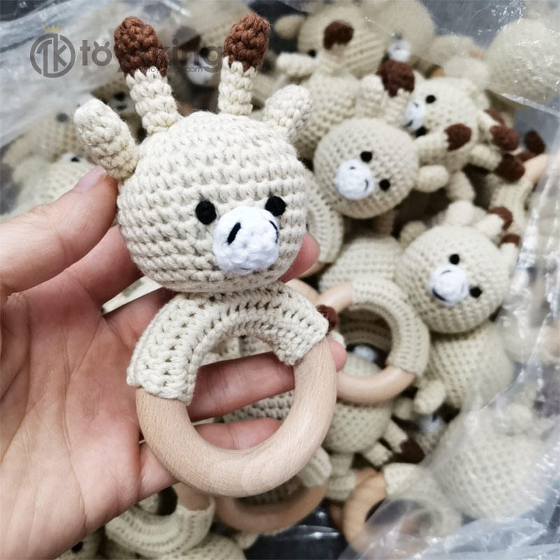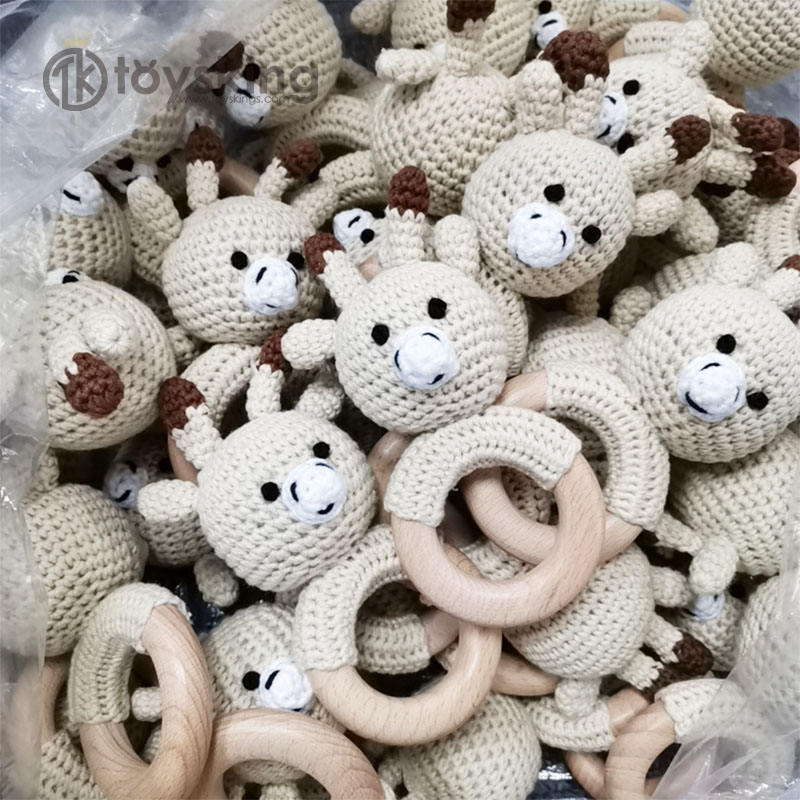 Sonajero de ciervo de ganchillo TK, cabeza de animal, hecho a mano con hilo, amigurumi, mordedor de madera, regalos