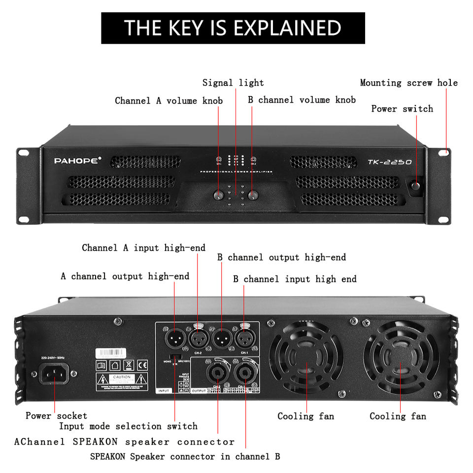 Amplificador de altavoz trasero TK2250 KTV profesional puro para Karaoke para habitaciones privadas y uso familiar