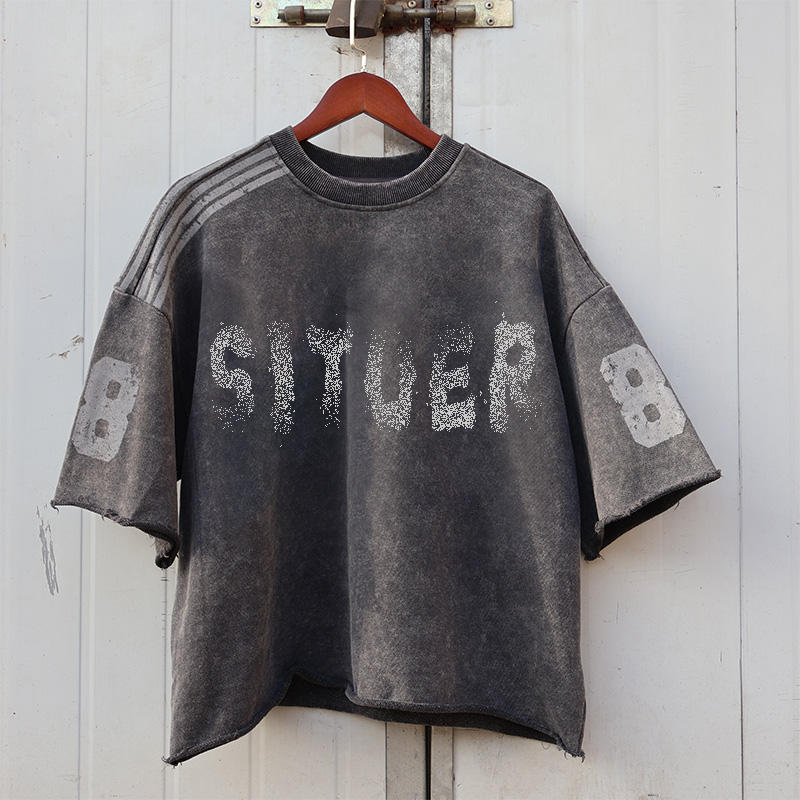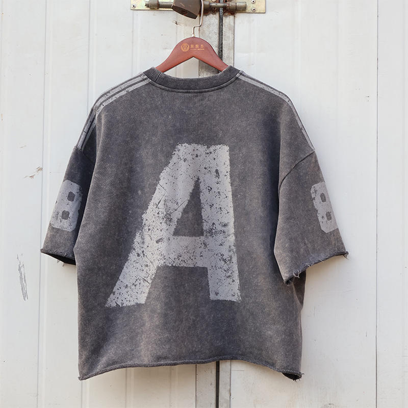 TKAN 65 logotipo personalizado impreso de gran tamaño francés Terry camiseta de alta calidad en blanco Vintage ácido lavado algodón liso camiseta para hombre