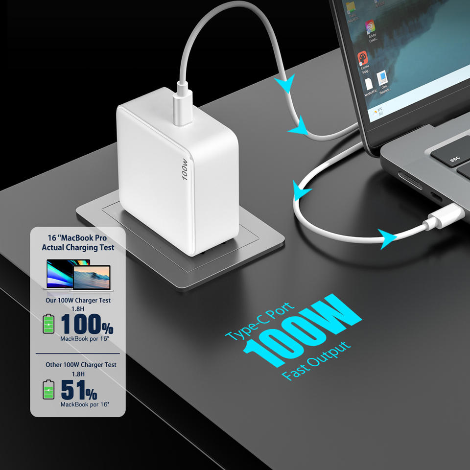 Cargador de Laptop TKT de 100W, Estación de Carga Rápida PD, Compatible con Teléfonos Android, Carga de Escritorio, OTP Plegable, Tipo C