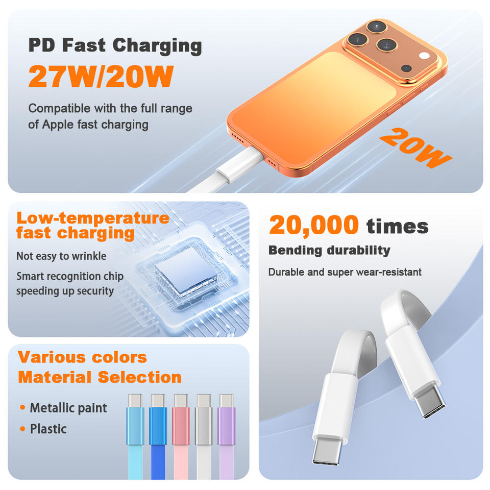 Cable de Datos TKT 2026 Pd de Carga Rápida de 20W, Tipo-C a Tipo-C, Sincronización de Datos de Alta Velocidad, Cable USB Plano, Cable de Carga Portátil para Laptop