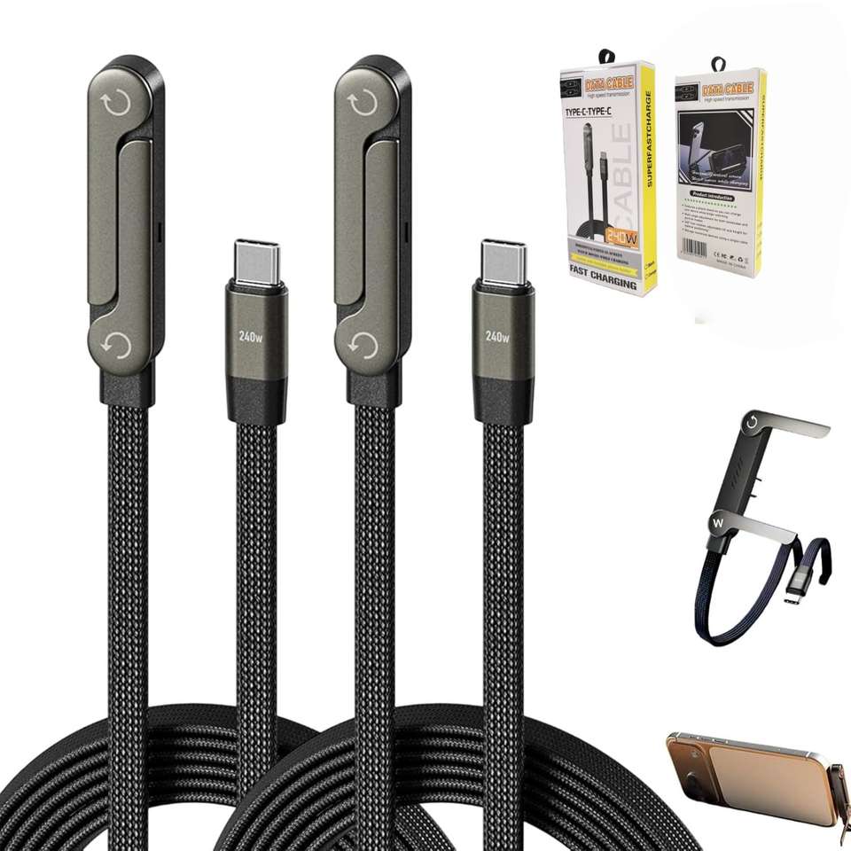 Cable de Datos TKT 2 en 1 con Soporte Invisible, Cable de Carga Rápida con Soporte para Teléfono Integrado, Cable de Carga Rápida de 240W