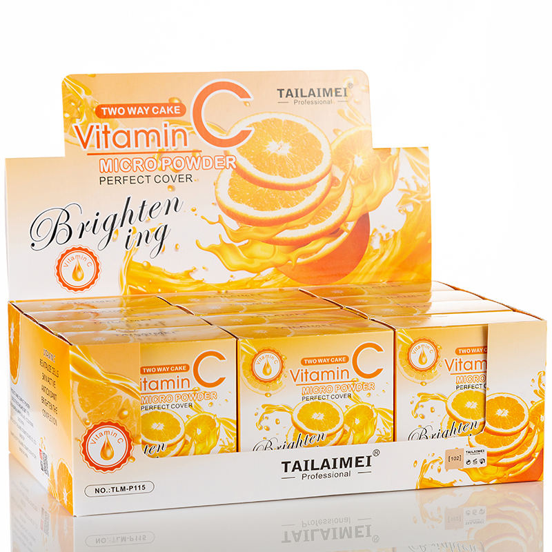 TLM-polvo con vitamina C, Control del aceite, brillo, ajuste antisudor, natural, duradero, no es fácil de quitar, maquillaje corrector en polvo