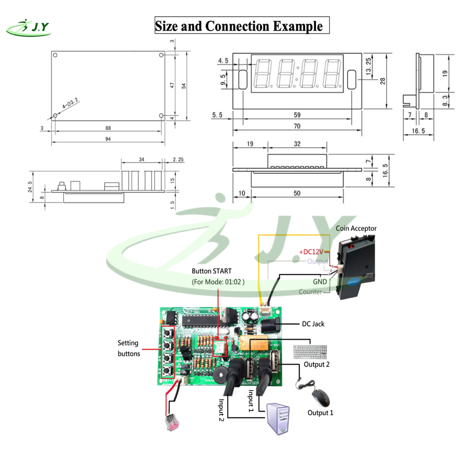 Controlador de Tiempo TM-18 de 4 Dígitos con Monedero USB, Placa de Control de Conteo de Tiempo Capaz de Controlar 2 Conjuntos de Dispositivos, Inglés, 1 Año de Garantía