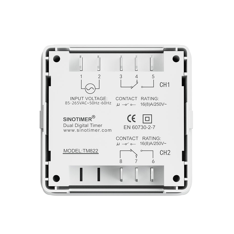 Mini Temporizador Programable Semanal de 7 Días TM822 con Dos Grupos de Salidas de Relé de Control Separado y 2 Canales 1 Segundo