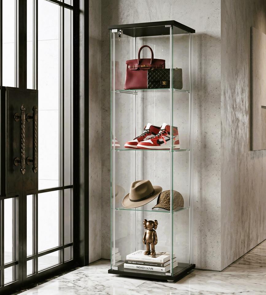 Vitrina Moderna de Vidrio para Colección de Modelos de Autos con Cerradura, Parte Superior e Inferior de Madera, Exhibidor con Tubos de Hierro, Vitrina para el Hogar