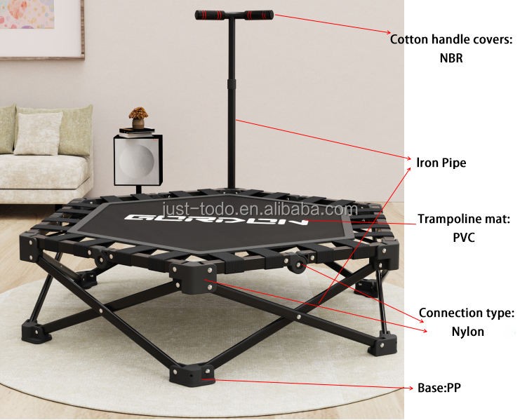 Trampolín plegable sin instalación TODO, trampolín de ejercicio con manillar, trampolín de salto, paquete pequeño, ahorro de carga