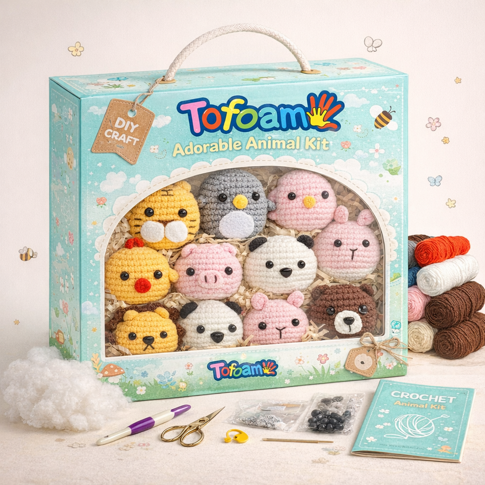 TOFOAM OEM Kit DIY de Ganchillo para Llavero de Muñeca Pequeña Estilo Animal Adorable, Ecológico y de Gran Venta, con Diseños de Pasos por Pasos
