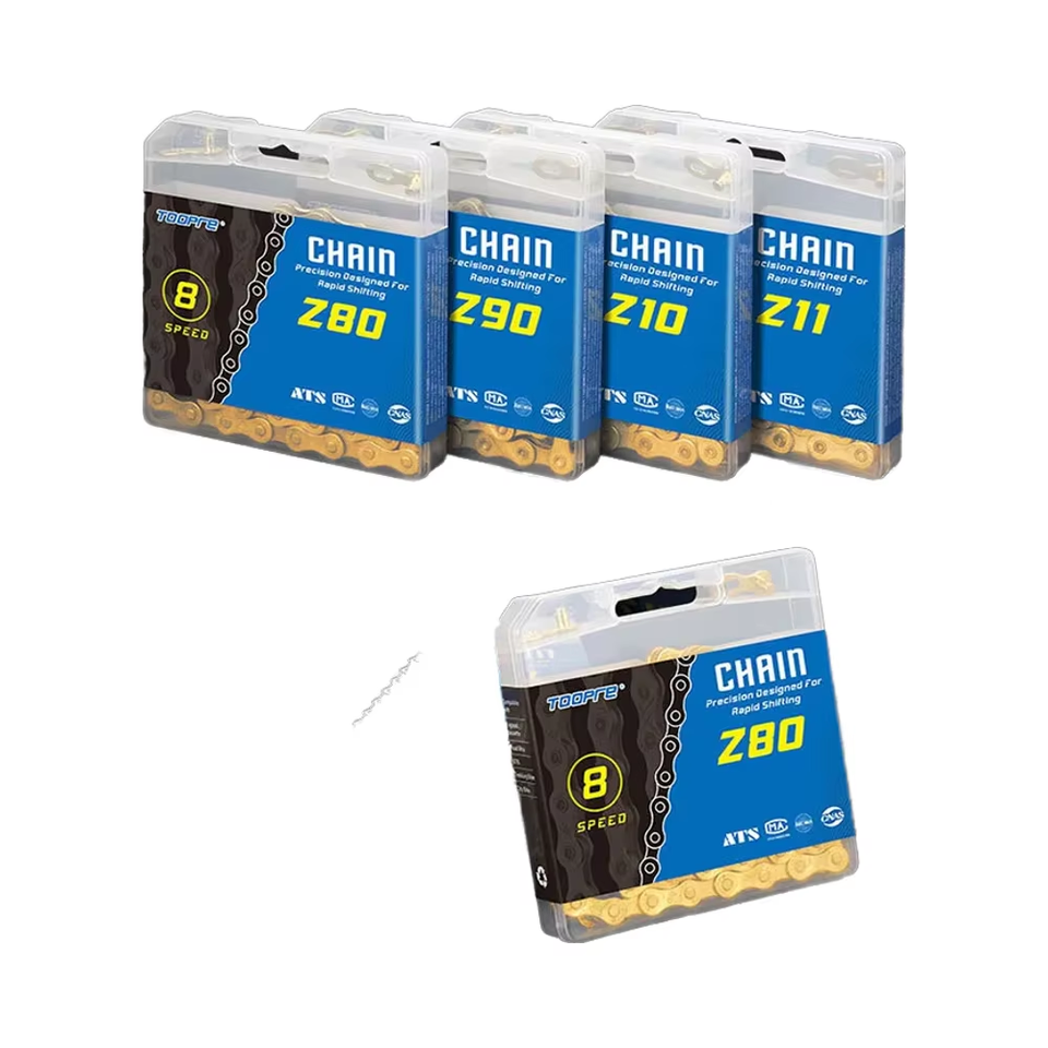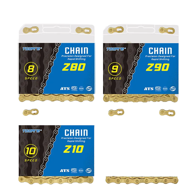 Cadena de bicicleta TOOPRE de una sola velocidad, 6-12 velocidades, MTB, bicicleta de carretera, 116L, disponible, Material de acero galvanizado dorado plateado