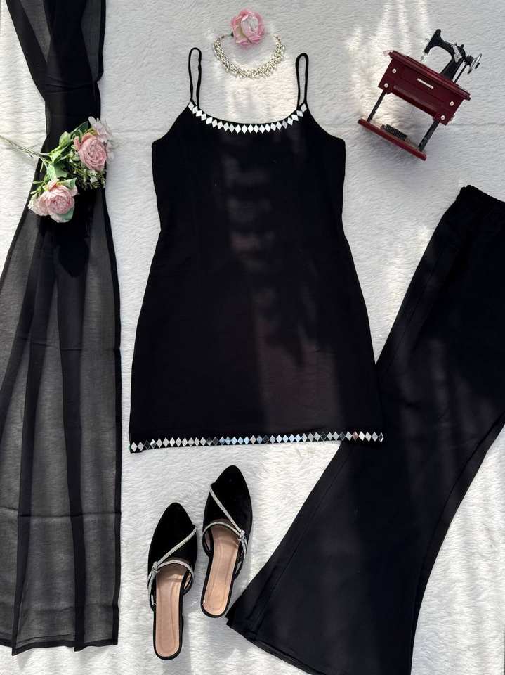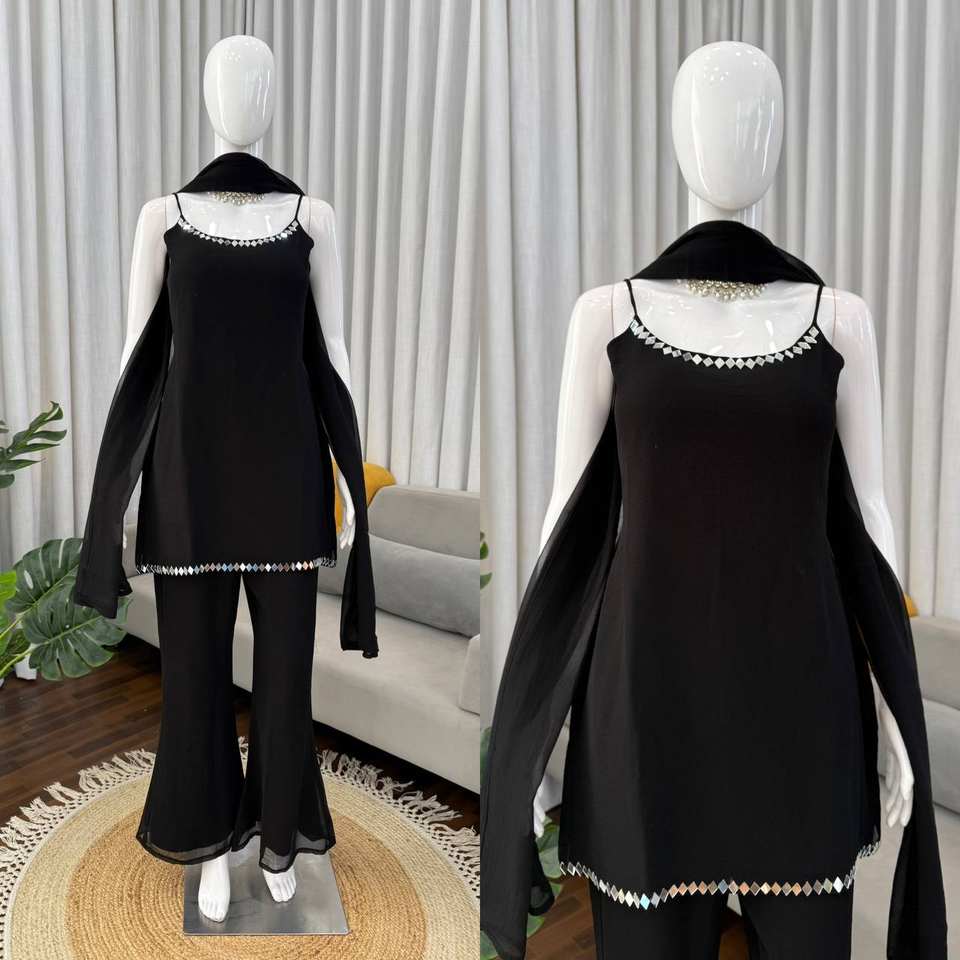 Traje de pantalón bootcut con dupatta de georgette sintético y bordado de espejos auténticos