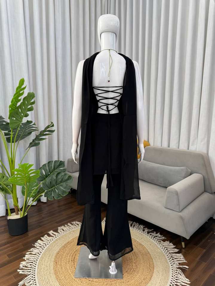 Pantalón de corte bootcut con top y dupatta