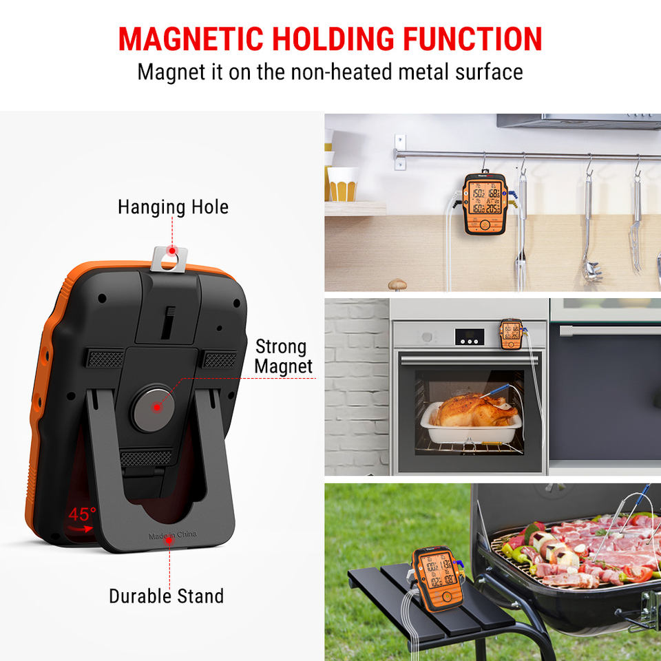 Termómetro Digital Inalámbrico para Barbacoa ThermoPro TP27B de 500 pies, Termómetro Electrónico con Temporizador, Hecho de Plástico Resistente