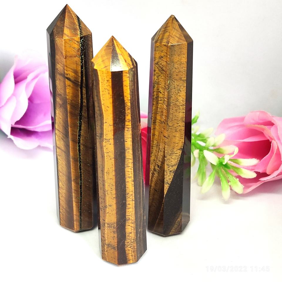 Ojos de tigre JEMBO de alta calidad, cristal de ojo de tigre dorado NATURAL, Obelisco, torre de energía pulida superior, varita de masaje curativo