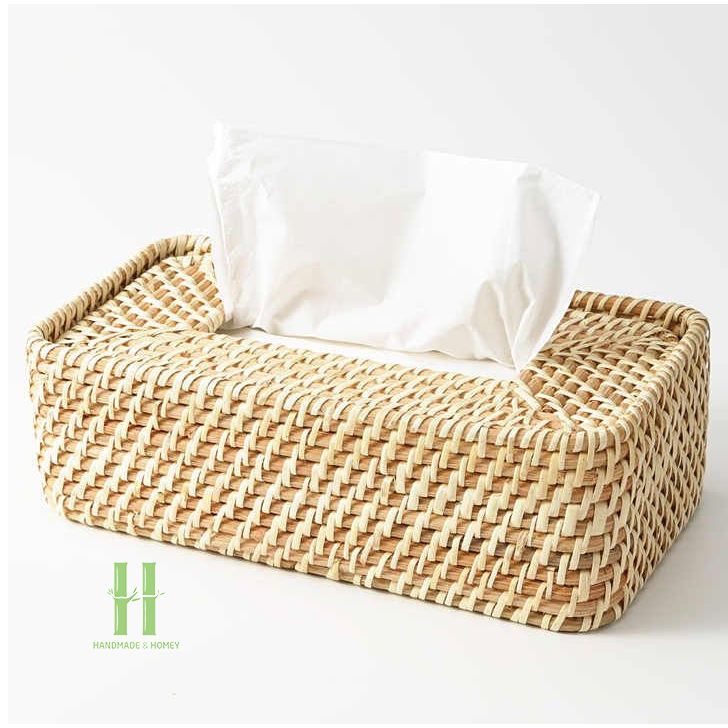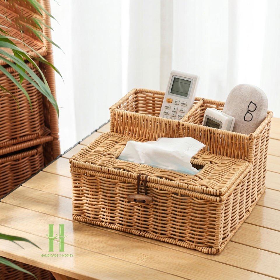 Caja de Almacenamiento Tejida a Mano Ecológica, Cesta Natural Moderna para Decoración del Hogar, Organizador de Pañuelos con Tapa