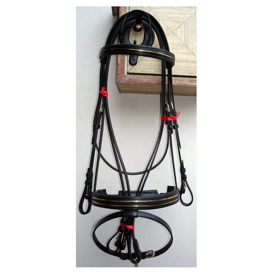 Brida de cuero de caballo de lujo de calidad superior Banda para la nariz y la frente personalizable con Pipine dorado Proveedor indio superior