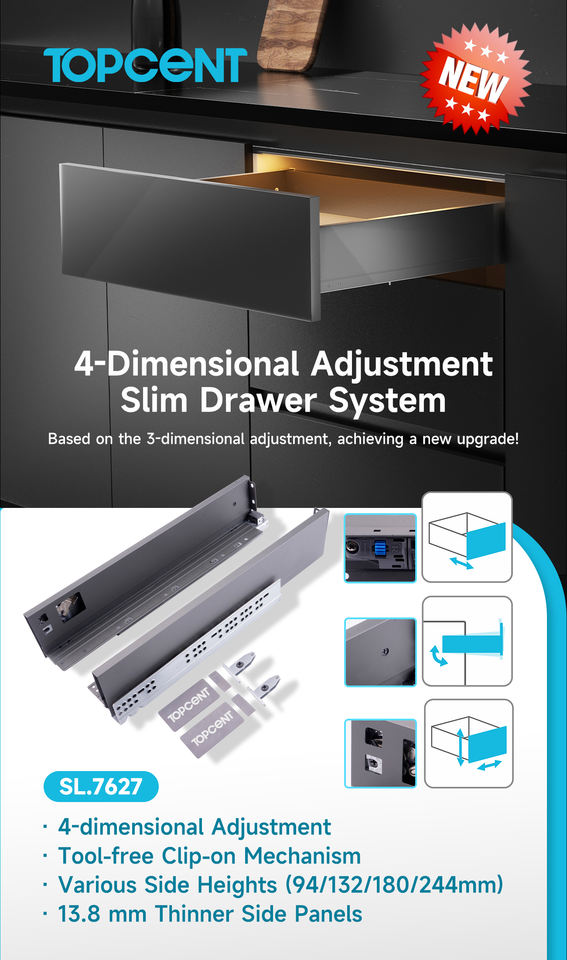 TOPCENT Factory Sistema de cajones TendemBox de montaje inferior con cierre suave 4D y diseño moderno, delgado, para cocina y apartamento