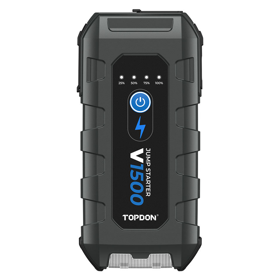 TOPDON V1500 admite 25 saltos en un banco de energía de arranque de refuerzo de coche portátil de carga completa para cargas diarias