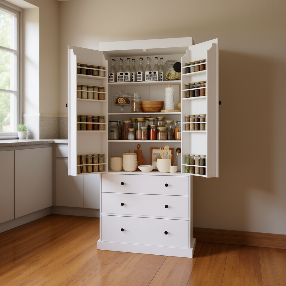 Armario de Cocina Independiente TOPMAX de 77 Pulgadas, Estilo Rústico, con 3 Estantes Ajustables y 8 Puertas