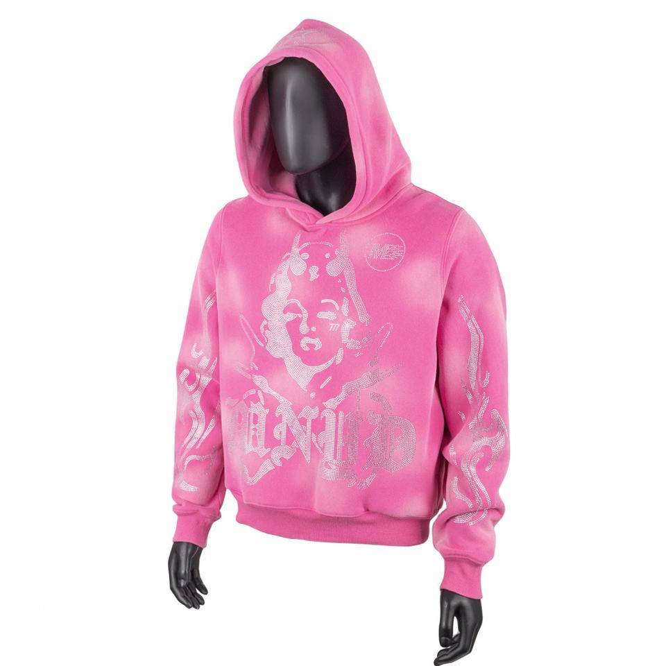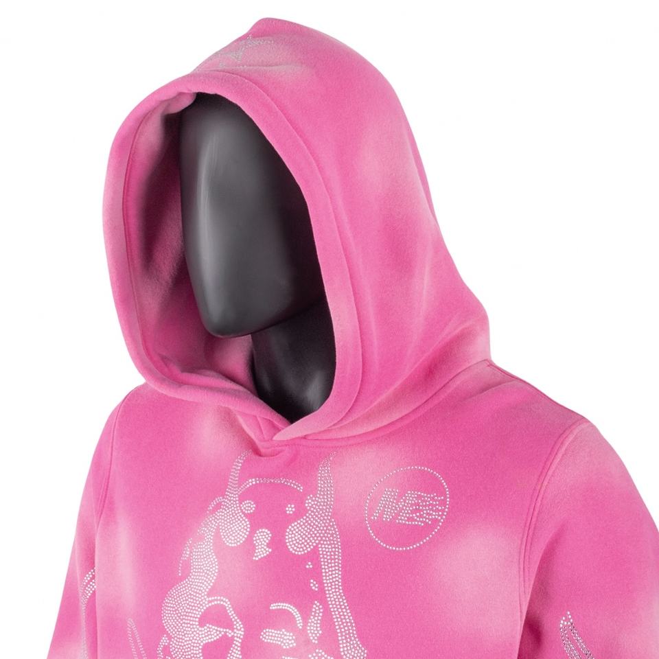 Sudadera con Capucha TOPSHOW de Alta Calidad, Personalizada con Pedrería, 100% Algodón, Estilo Holgado, Corta, Gruesa, Color Rosa Deslavado al Sol