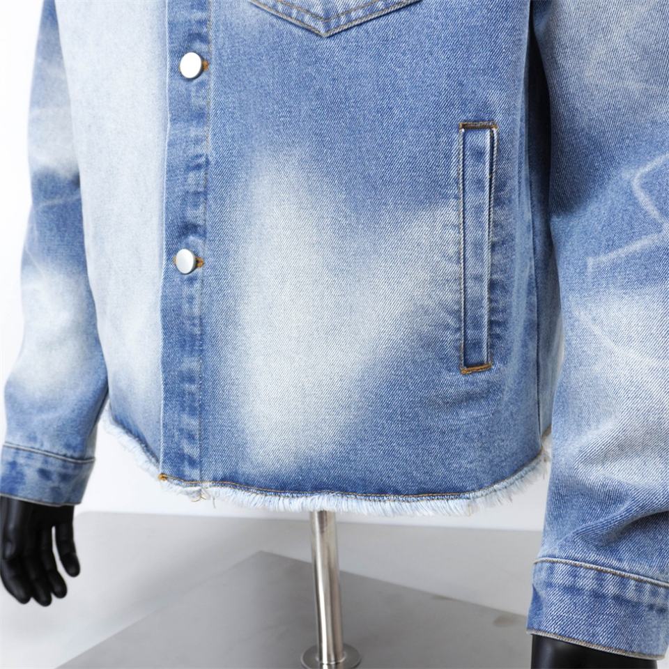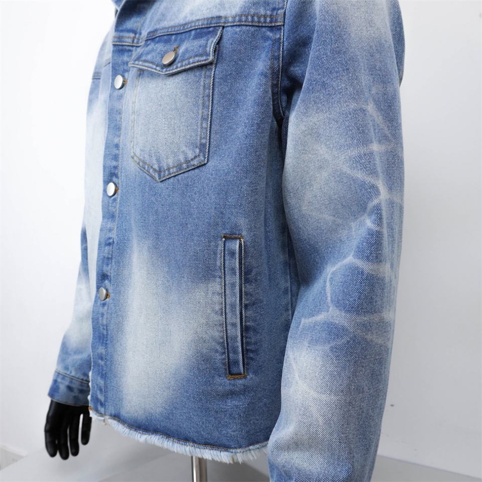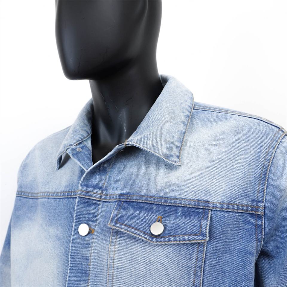Chaqueta Vaquera Deslavada Azul Claro de Diseñador de Alta Calidad TOPSHOW, Chaqueta Vaquera Corta con Lavado Ácido Personalizado para Hombre