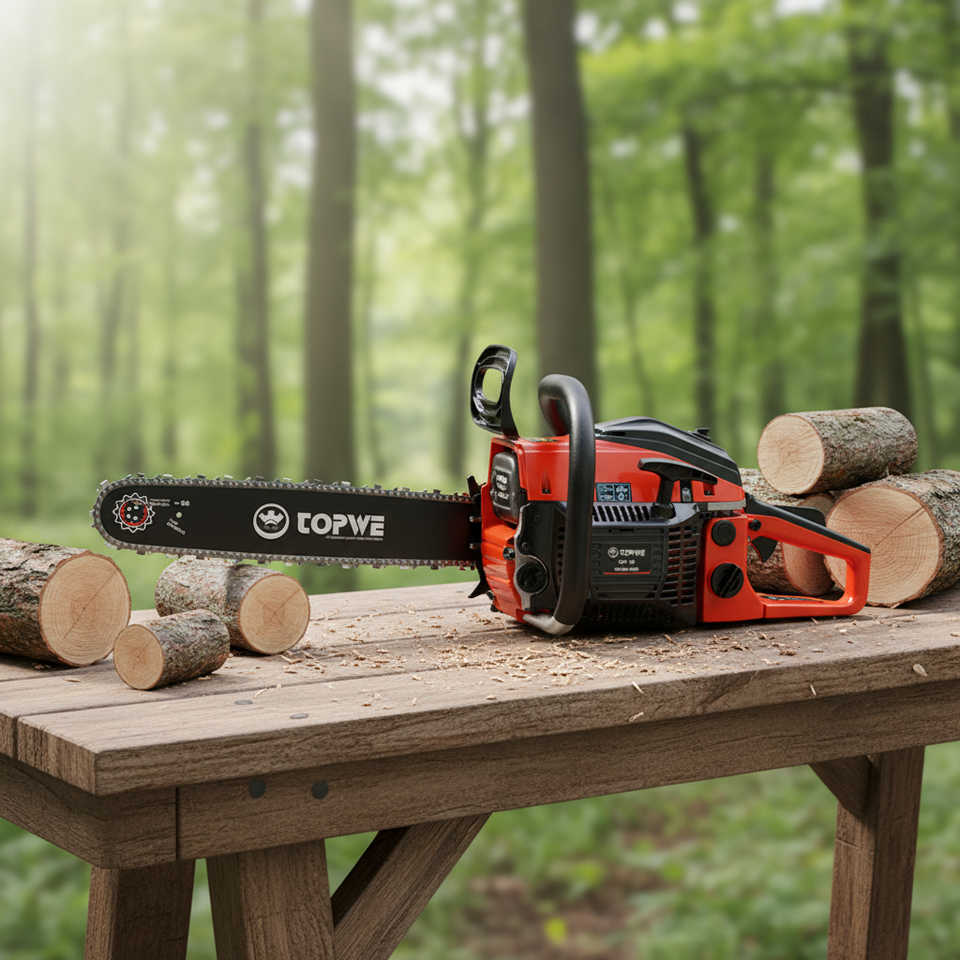 Motosierra TOPWE de Corte Suave, 45cc, Refrigeración por Aire Forzado, para un Funcionamiento Sin Problemas